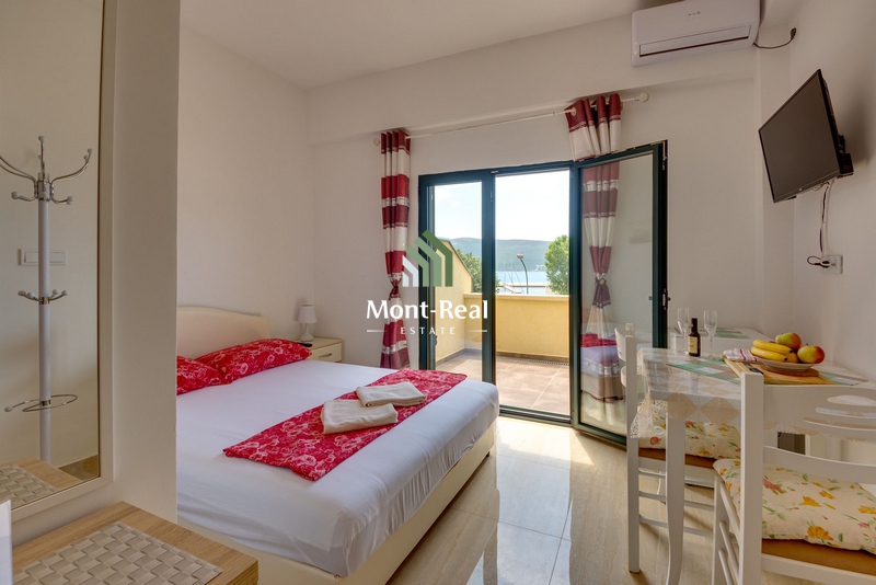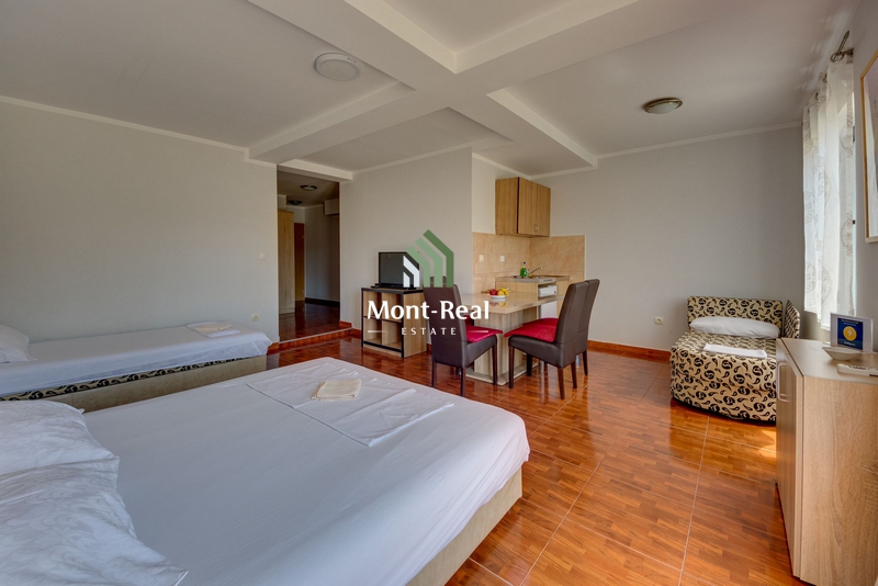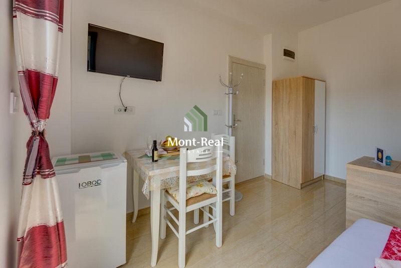 Kuća ima 11 apartmana. Sagrađena je 2007. godine. Svaki od apartmana je kompletno opremljen, ima privatno kupatilo, klimu, TV i frižider. Neki od apartmana su za dvoje, neki za četvoro ljudi. Svi, osim jednog apartmana imaju velike i namještene balkone sa kojih se pruža predivan pogled na more.