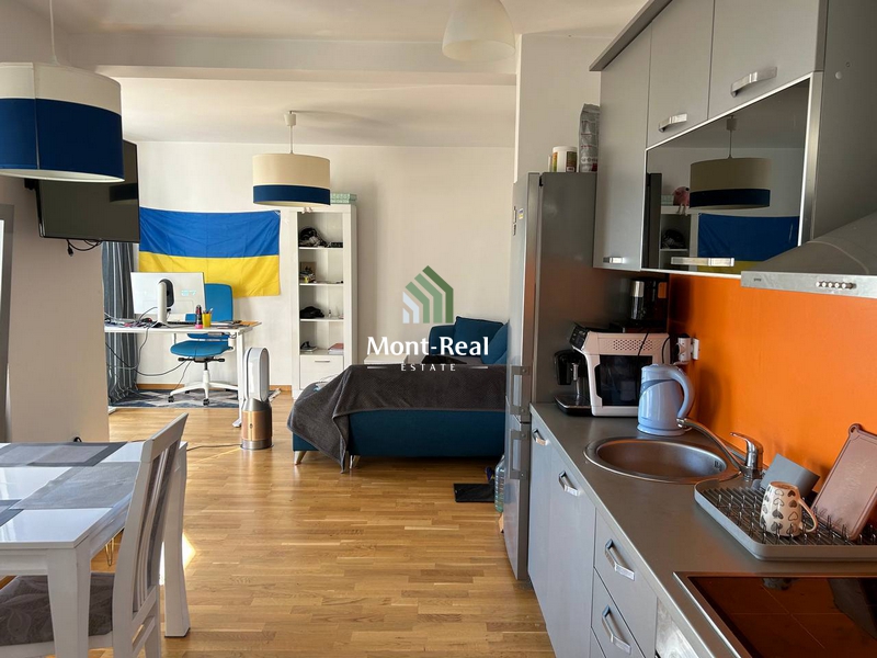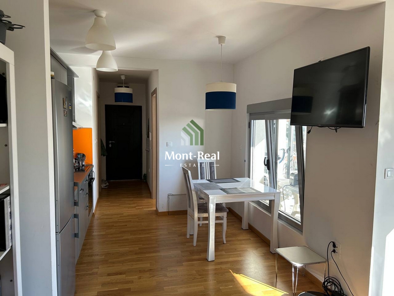 Stan je površine 47m2. 5 minuta pješke do plaze, a dva minuta do prvog marketa. Posjeduje jednu spavacu sobu,