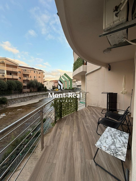 Izdaje se kompletno opremljen jednosoban stan površine 37 m², sa dodatnom prostranom terasom, smješten u prizemlju stambene zgrade iza Eko pumpe u Budvi, u neposrednoj blizini poliklinike Milmedika.