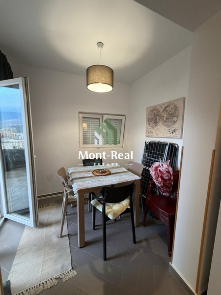 Nekretnina je renovirana i prodaje se namještena. Prostor je manjih dimenzija, ali je funkcionalno organizovan i sastoji se od jedne sobe, dnevnog dijela, kuhinje i kupatila, sa terasom koja proširuje korisni prostor. Raspored je praktičan i pogodan za svakodnevno korišćenje.