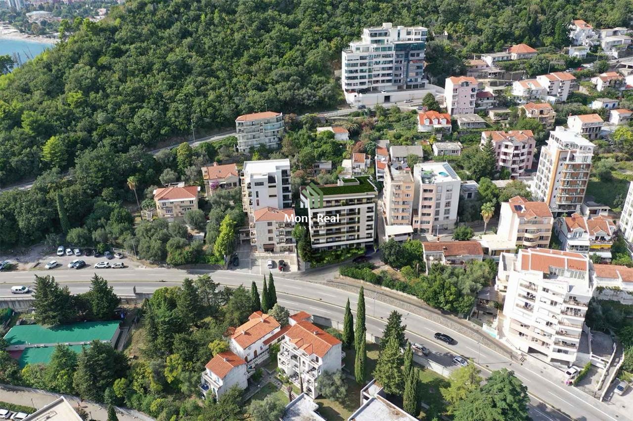 Stan se nalazi na petom, ujedno i posljednjem spratu moderne stambene zgrade koja posjeduje lift i garažu. Prostran je, svijetao i funkcionalno organizovan, idealan za porodični život ili luksuzno stanovanje. Zahvaljujući spratnosti i poziciji, stan pruža panoramski pogled na more, što ga čini posebno atraktivnim i rijetkim na tržištu.