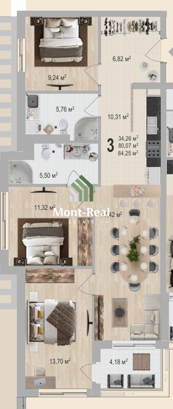 В здании доступно несколько квартир различных площадей, при этом гаражное место приобретается отдельно. Предусмотрена удобная схема оплаты: 60% при подписании предварительного договора и оставшиеся 40% до декабря 2026 года.